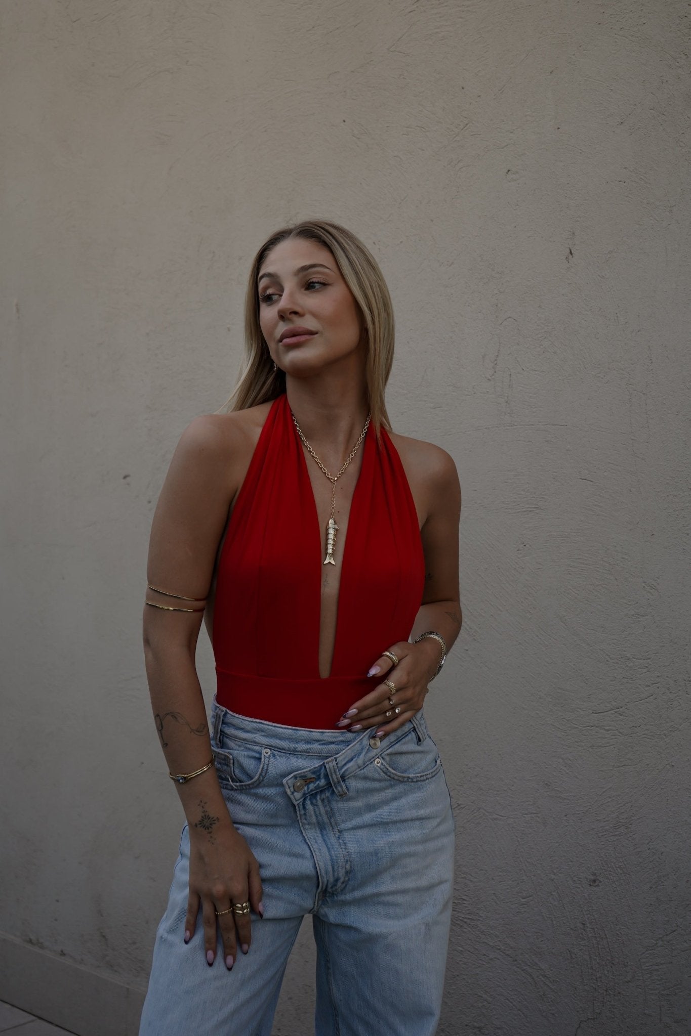 Body escote profundo con broches a presión de acero inoxidable / Doble tela sin costuras / Tela elasticada adaptable.
