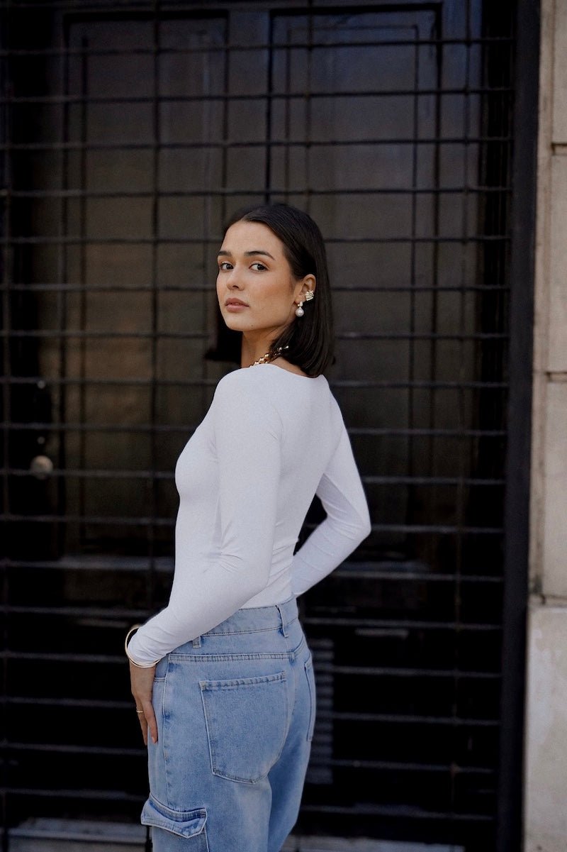 Body con broches a presión y escote cuadrado, doble tela en cuerpo.