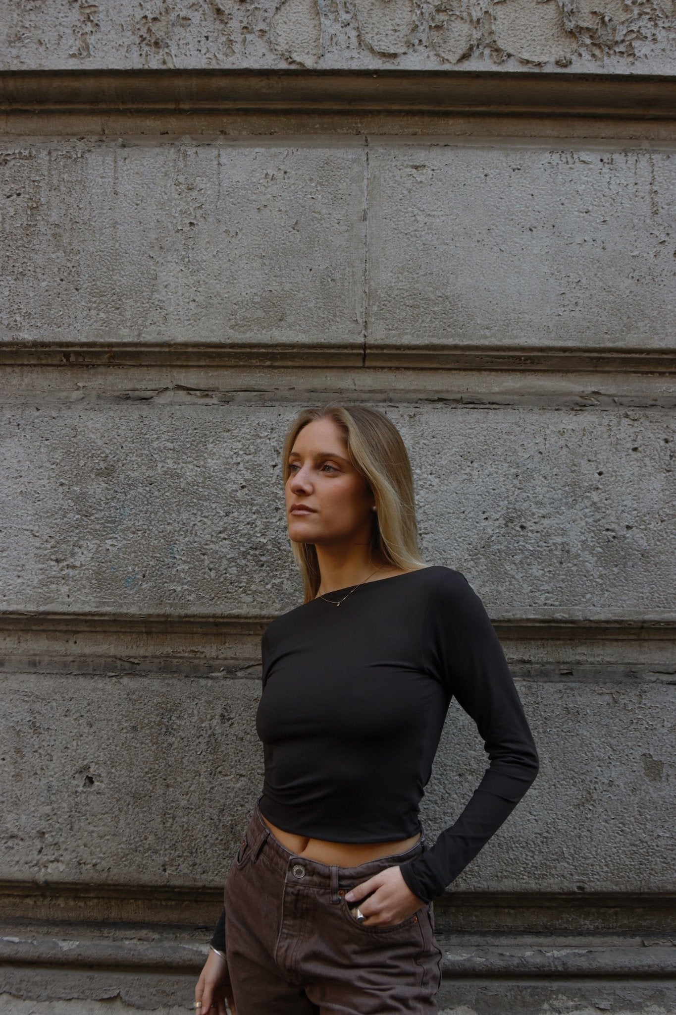 Top Básico cuello recto y espalda rebajada. Doble tela en cuerpo.