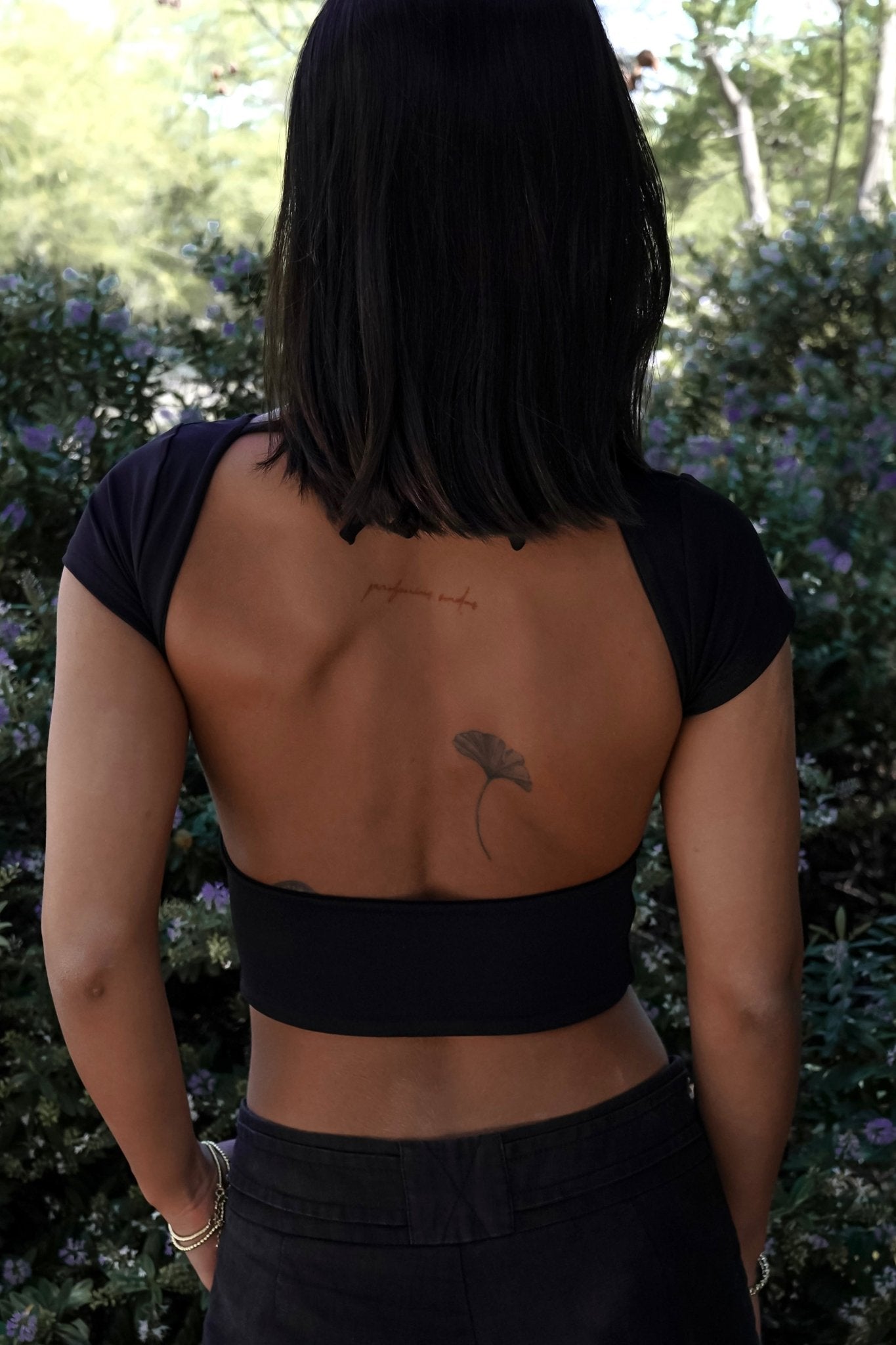 Top con espalda descubierta.