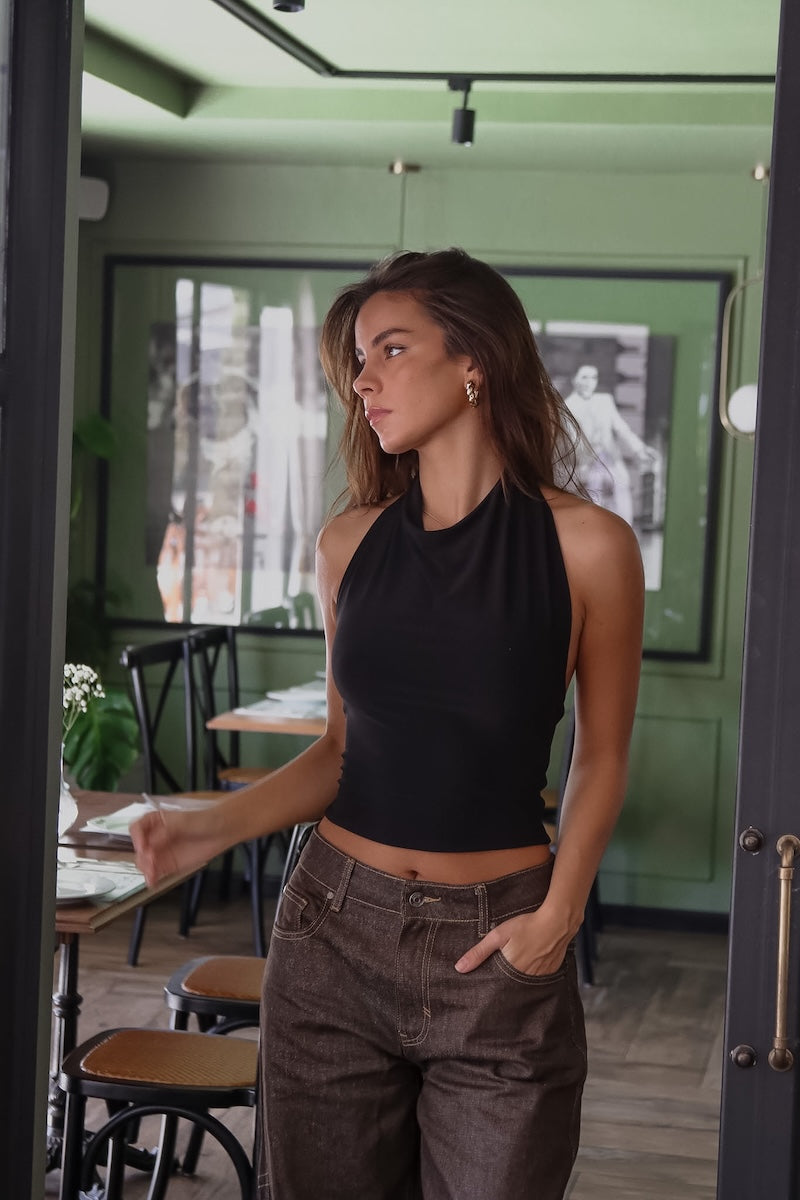 Top básico confeccionado en doble tela.